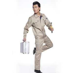 • 純棉米黃色工作服滌棉電焊工作服加厚防靜電